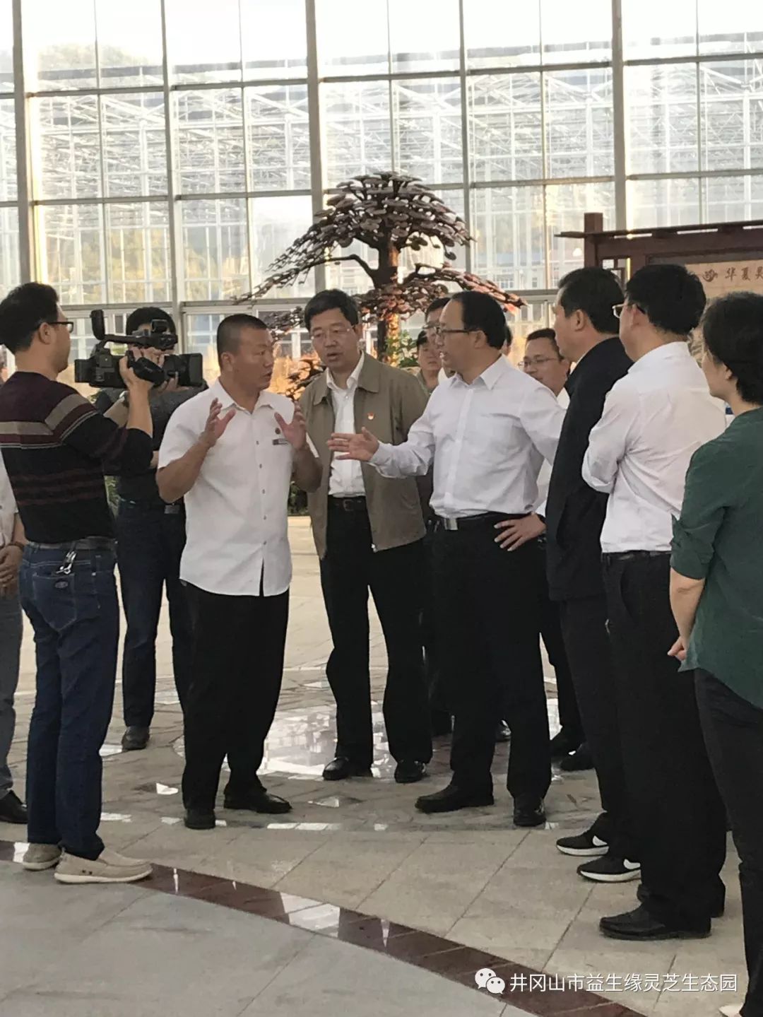陳副省長(zhǎng)一行來(lái)到產(chǎn)品展示區(qū)進(jìn)行參觀,了解了公司種植、經(jīng)營(yíng)模式、產(chǎn)業(yè)發(fā)展規(guī)模、產(chǎn)品銷售及經(jīng)濟(jì)效益等情況。井岡山市益生緣靈芝生態(tài)園董事長(zhǎng)劉鋮作了詳細(xì)的匯報(bào)。井岡山益生緣靈芝生態(tài)園有限公司于2014年落戶井岡山市拿山鎮(zhèn)勝利村。目前已建成包含有野生靈芝菌種研發(fā)、馴化、培育、靈芝菌椴生產(chǎn)、種植、產(chǎn)品研發(fā)、產(chǎn)品銷售、旅游功能為一體的高科技觀光和江西省農(nóng)業(yè)龍頭企業(yè)。