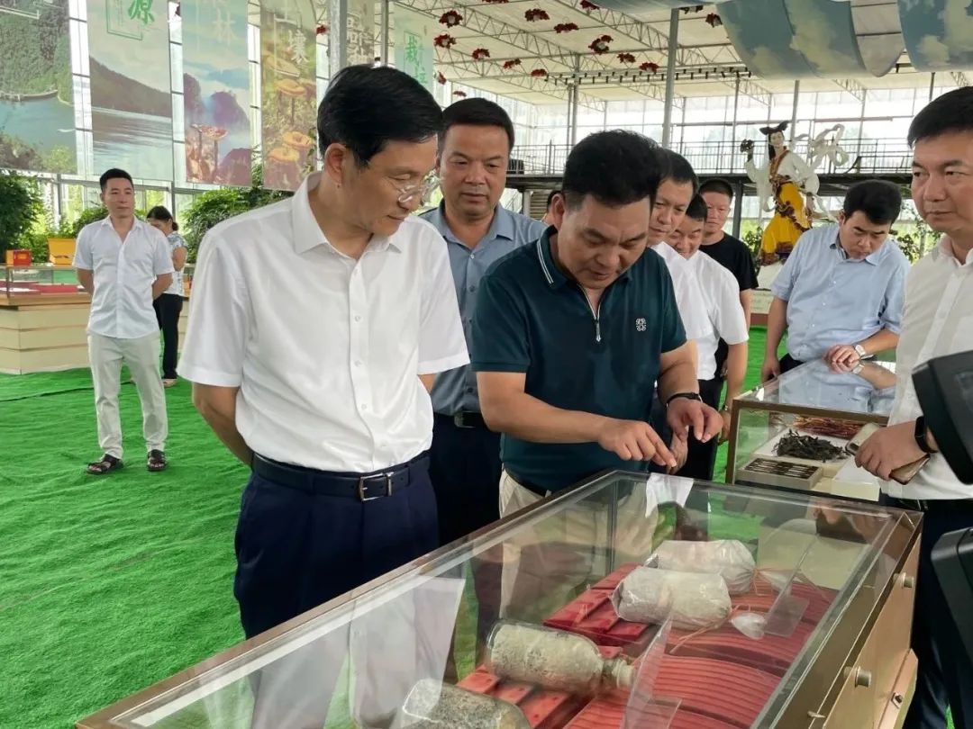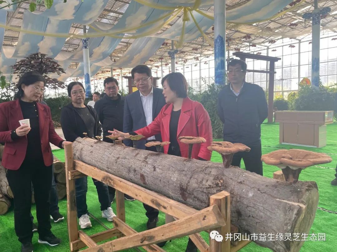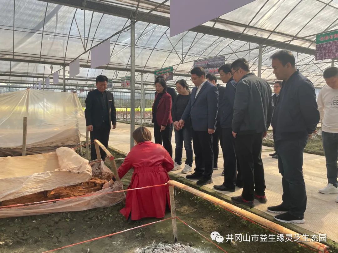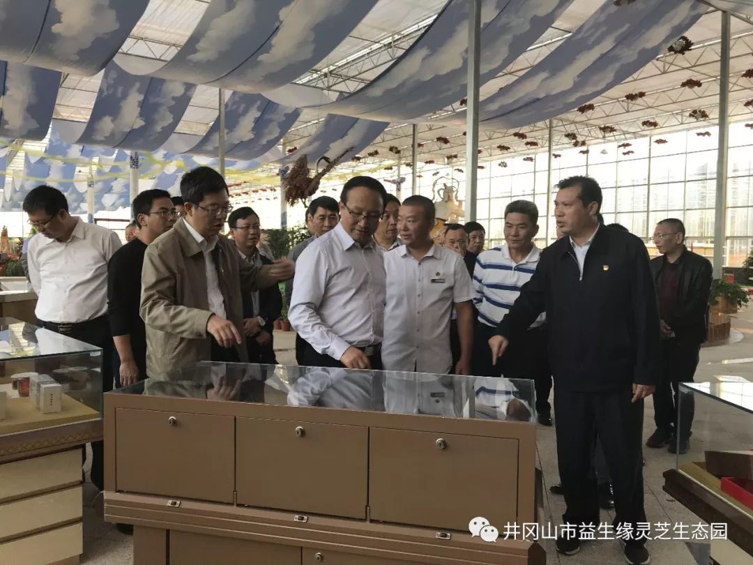 陳副省長(zhǎng)一行來(lái)到產(chǎn)品展示區(qū)進(jìn)行參觀,了解了公司種植、經(jīng)營(yíng)模式、產(chǎn)業(yè)發(fā)展規(guī)模、產(chǎn)品銷售及經(jīng)濟(jì)效益等情況。井岡山市益生緣靈芝生態(tài)園董事長(zhǎng)劉鋮作了詳細(xì)的匯報(bào)。井岡山益生緣靈芝生態(tài)園有限公司于2014年落戶井岡山市拿山鎮(zhèn)勝利村。目前已建成包含有野生靈芝菌種研發(fā)、馴化、培育、靈芝菌椴生產(chǎn)、種植、產(chǎn)品研發(fā)、產(chǎn)品銷售、旅游功能為一體的高科技觀光和江西省農(nóng)業(yè)龍頭企業(yè)。